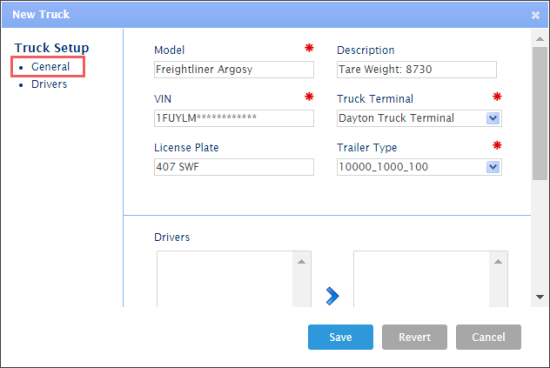 - Go to the Drivers section, select the drivers assigned for the truck. They are selected from users with the driver’s role created previously.