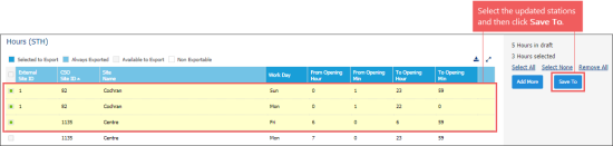 For more information on how to update the trading hours for your account stations in the draft, see Editing Draft Manually.