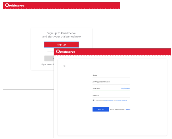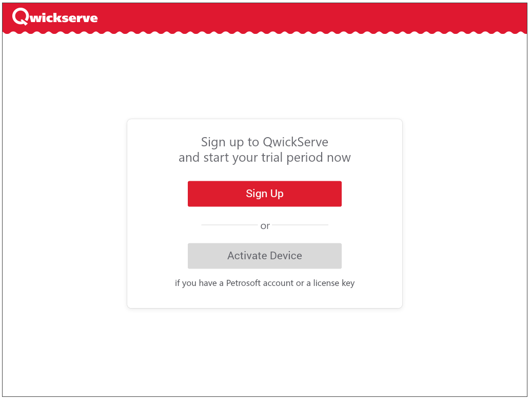 New! New customers can now sign up for QwickServe trial directly from SSOT and QwickServe Order Manager devices. Where: SSOT/QwickServe Order Manager > startup screen. UI Changes: The Sign Up button has been added to the startup screen, allowing a customer to pass to the registration form. For details, see Activating QwickServe Devices. |