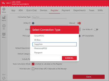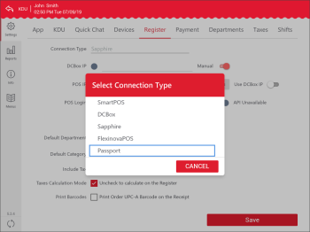 New! SSOT and QwickServe Order Manager devices now integrate directly with Gilbarco Passport cash registers. Integration allows configuring cash register settings in the administrative interface and receiving payment status updates. Where: SSOT/QwickServe Order Manager > administrative interface > Settings view > Register tab. UI Changes: The Register view of QwickServe application settings now allows configuring settings for supported cash registers. For Gilbarco Passport cash registers, in the Connection Type list, the Passport option is available. For details, see QwickServe Device Register (POS) Integration. |