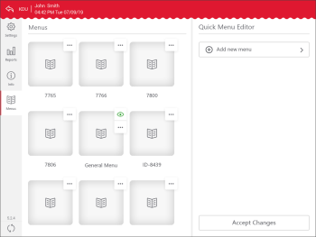 New! It is now possible to quickly change or set up location menus from QwickServe Order Manager and SSOT devices. Where: SSOT/QwickServe Order Manager > administrative interface > Menus view. UI Changes: The Menus view and Quick Menu Editor have been introduced in the administrative interface. For details, see Working with Menus at QwickServe Devices. |