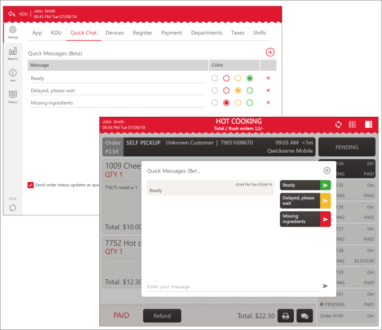 New! Authorized staff can now send short messages about orders to customers who use QwickServe Mobile. Both custom template messages can be sent. Where: