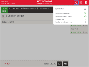 New! It is now possible to check the current network and back-office connections status, check if the license is still active and review the number of orders that got stuck at the QwickServe Order Manager and have not been delivered to the Cloud yet. Where: QwickServe Order Manager > Orders view. UI Changes: At the top right corner of the Orders view, the Sync status icon has been added. For details, see QwickServe Synchronization Status. |