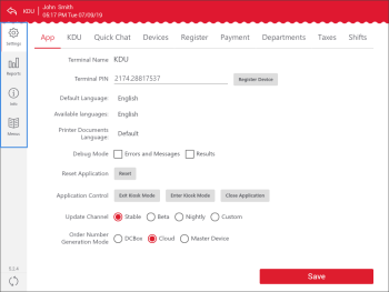 New! A QwickServe application license can be registered from the SSOT or QwickServe Order Manager device for a specific location (business unit). Where: SSOT/QwickServe Order Manager > startup screen. UI Changes: The Activate Device button has been added to the startup screen, allowing a customer to pass to the device activation form. For details, see Activating QwickServe Devices. |