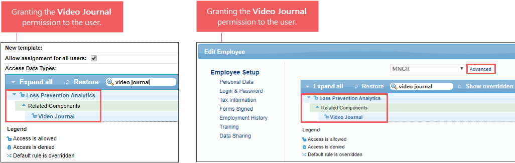 To make sure the Video Journal permission is granted, check either of the following user settings in CStoreOffice®: