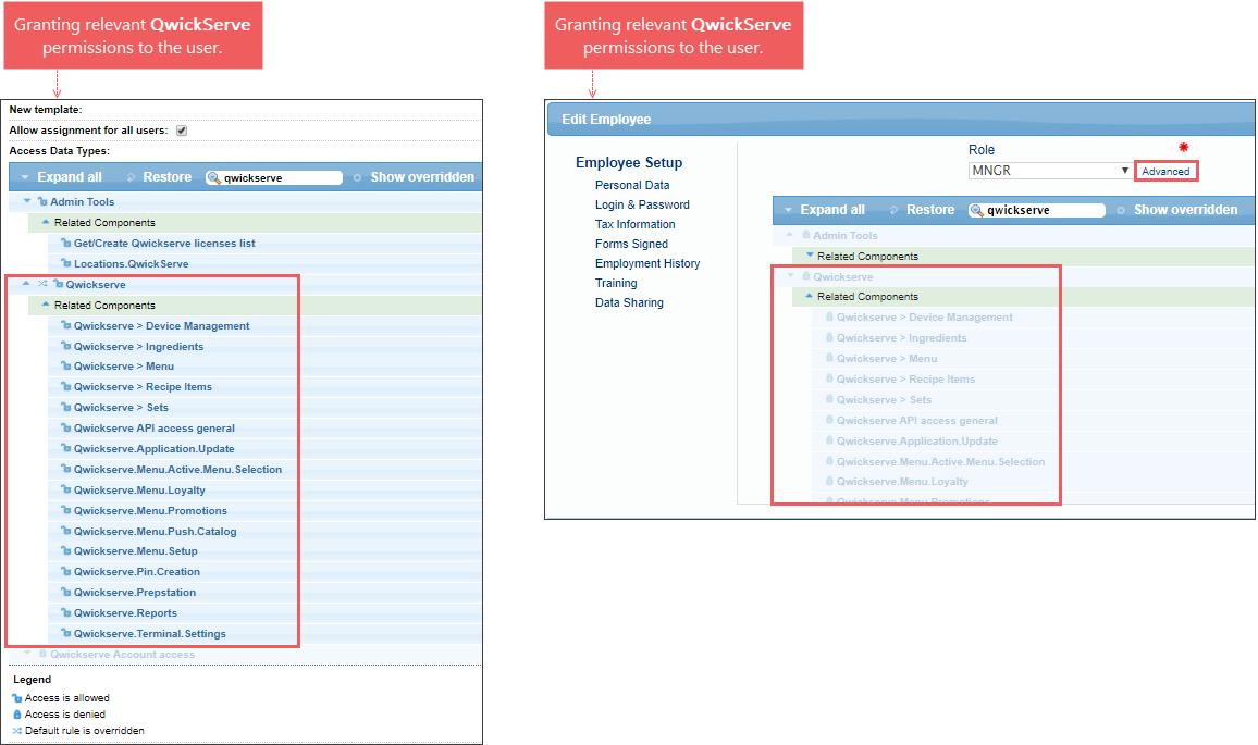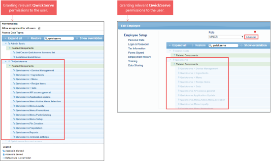 To make sure relevant QwickServe permissions are granted, check either of the following user settings in CStoreOffice®: