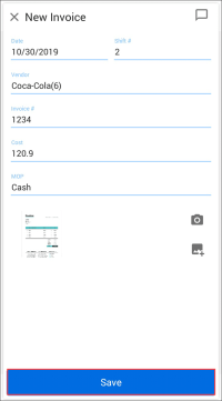 - To add a photo, tap the photo icon and take the invoice photo with the device camera.