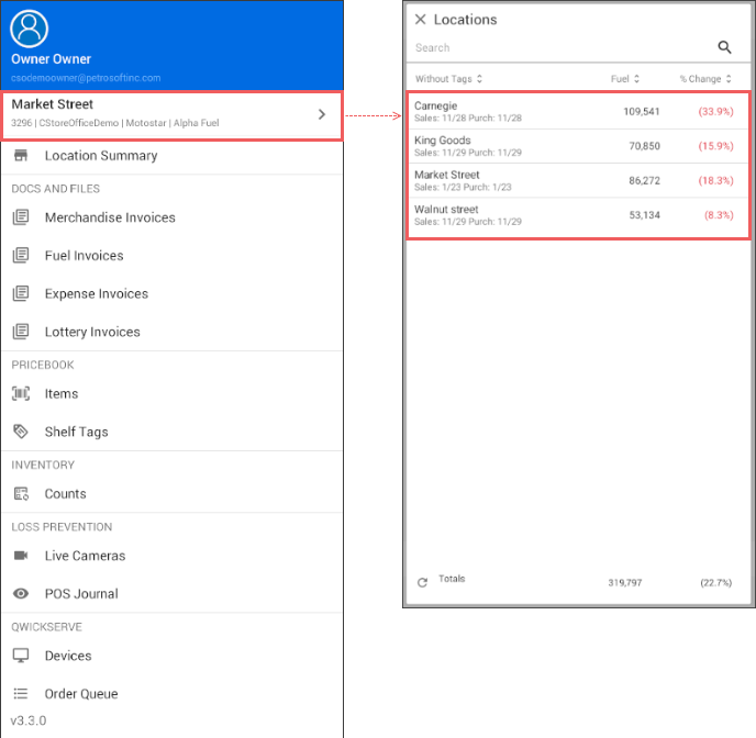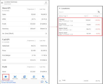 - At the top left corner of the Summary view, tap the menu button, then tap the current location and from the list, select the location.