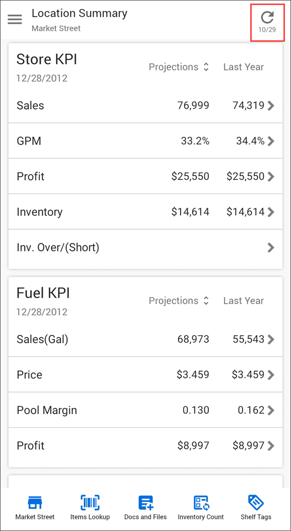 - To update the summary information manually, tap the sync icon.