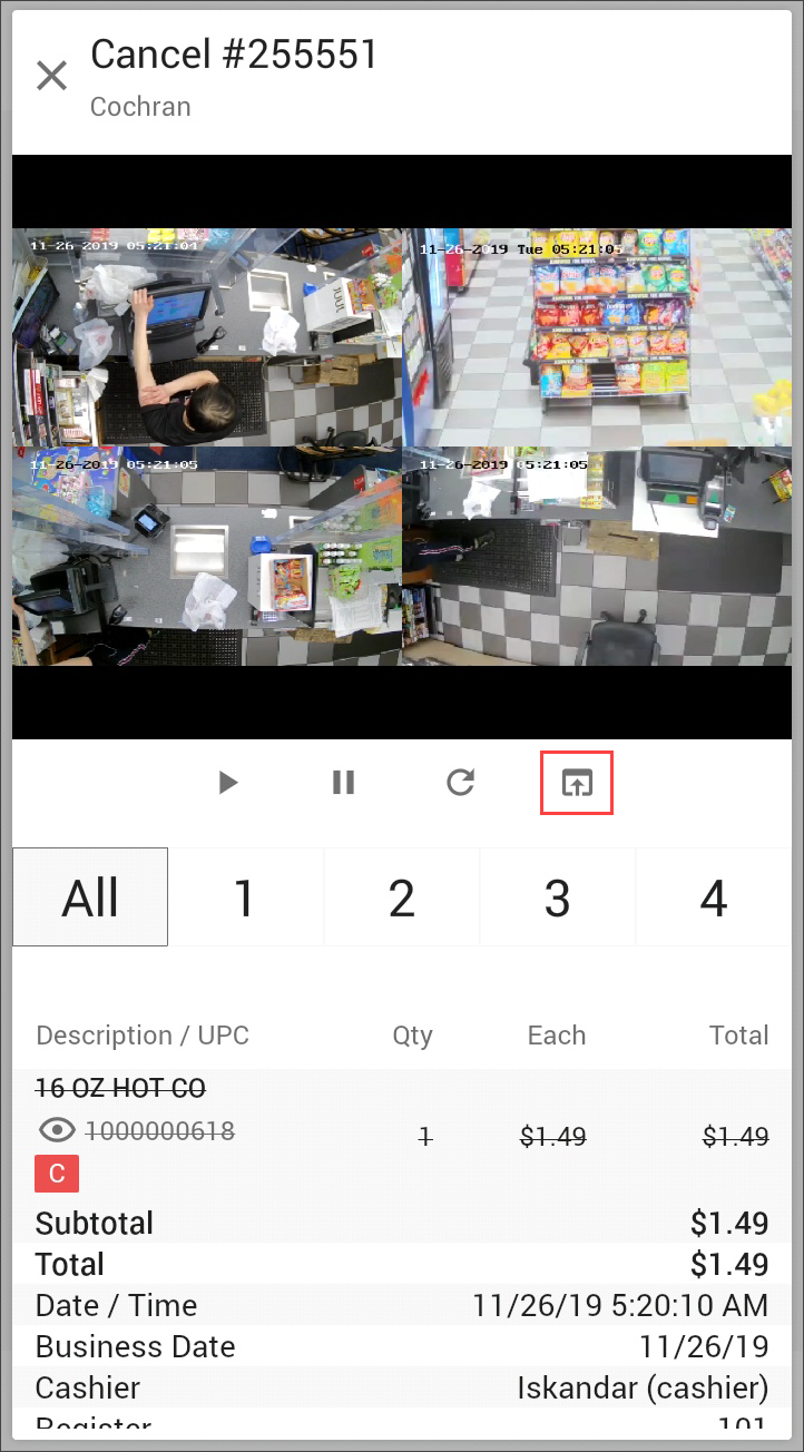 With CStoreOffice® Mobile App, you can review cash register transactions and watch store camera records for these transactions using a mobile device.
