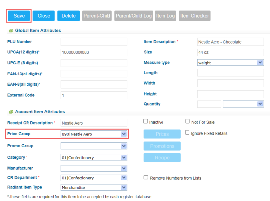 - In the Price Groups list, find the group which has just been assigned to the item.