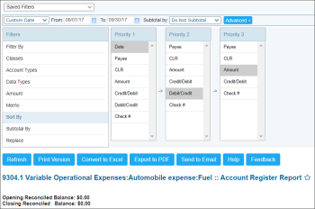 This section describes the specifics of accessing and interpreting the Account Register report.