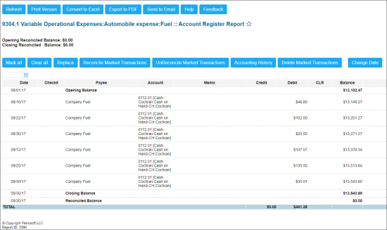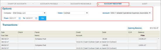 The Account Register report is used to work with a large volume of transactions: to view transactions and update many of them at once.
