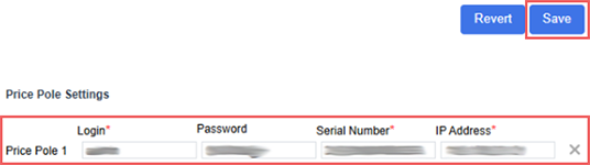 Communication with the price pole device is performed through the cloud-based API. The connection parameters are configured through CStoreOffice®: