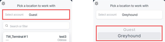 At the top of the locations list, click Select account and pick Guest.