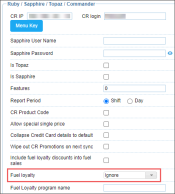 Troubleshooting: To display fuel discounts in the shift report, select the Fuel Loyalty option in the Station Options section of the cash register settings.