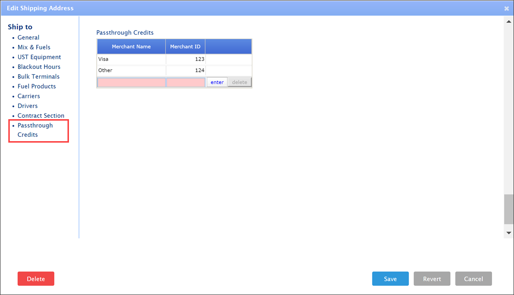 - In the Passthrough Credits section, enter the pass through credits data, if any.