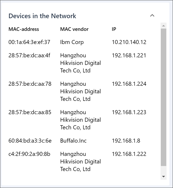 - MAC vendor: The device vendor