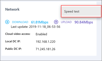 The LPA Settings Console updates the download and upload metrics periodically. To see the current network speed, at the top right of the widget, click the three dots icon and select Speed test.