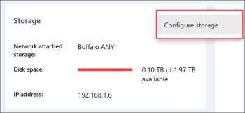 If necessary, you can update the NAS device settings. To do this, at the top right of the widget, click the three dots icon and select Configure storage. You can then set up the NAS device as required. For details, see Configuring NAS Settings.