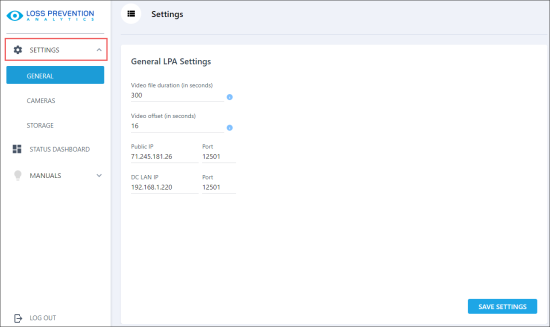 LPA automatically detects devices in the LPA infrastructure and displays the device settings in corresponding sections of the Settings view. You can check the settings and update them if necessary. Once you save the updates, LPA validates the configured parameters and sends the changes to the DC Box configuration.