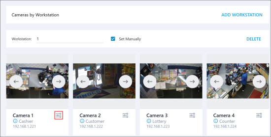 - In the Camera Settings section, at the bottom right of the necessary camera slot, click the settings icon.