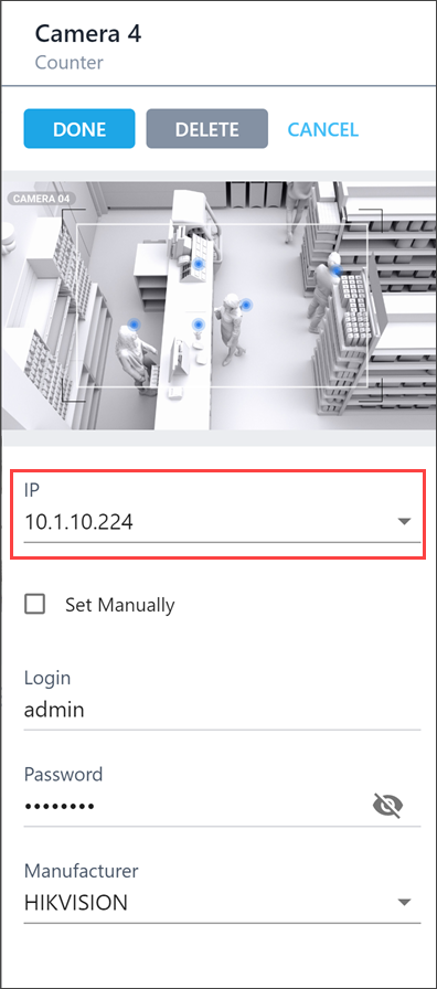 - Password: Make sure the password set during the camera's activation equals to the password set in Loss Prevention Analytics.