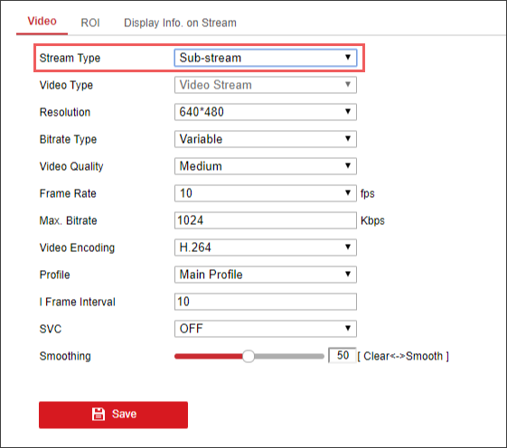 - Sub-stream: This stream is used to broadcast a live stream. Make sure its settings are configured as it is shown in the image below: