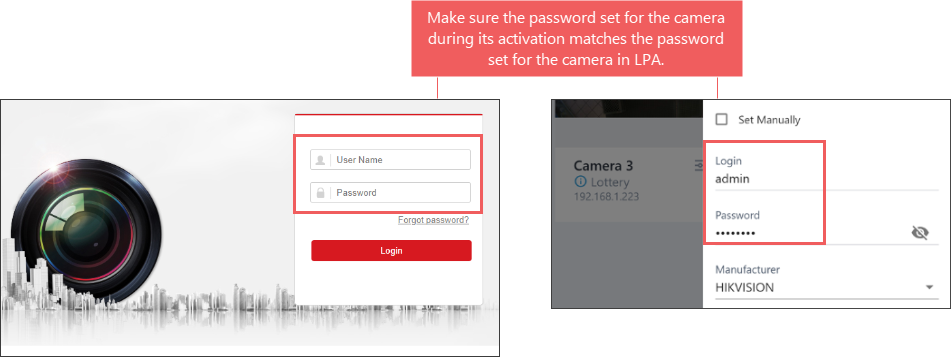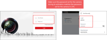 - Login: Make sure the login's value equals to admin for the camera and camera's settings in LPA.