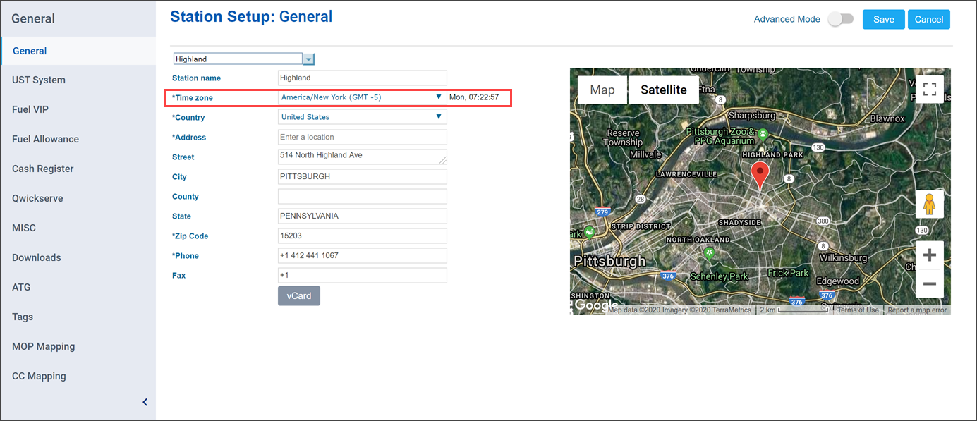 - In the General form, check the Time zone field and make sure the correct time zone is selected.