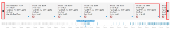 - To navigate through the events, use the mouse wheel or click the right and left buttons at the rightmost and leftmost of the timeline.
