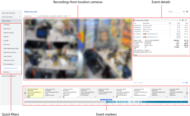 Loss Prevention Analytics offers a set of presets, or quick filters, for the Video Journal. Quick filters are located in the left pane of the Loss Prevention Analytics window. You can click a specific quick filter to quickly get the necessary report data.
