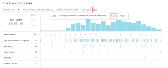 You can copy a filter you set up and send it to other CStoreOffice® users in your company. The copied filter is sent in the form of a link to the Loss Prevention Analytics form with the filtered results.