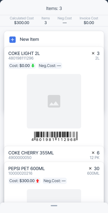 You may select existing invoice or create a new one by tapping Add New Invoice. For more information, see Creating a new invoice. The Add New Invoice button hides as you swipe the invoices list up. To reveal this button, swipe down the list. The button appears as you reach the list top