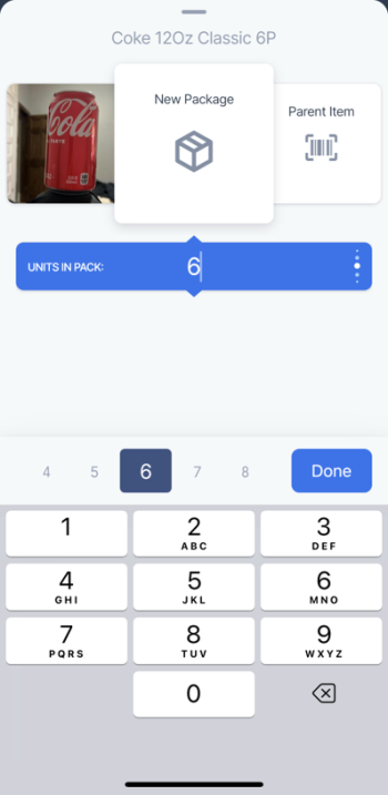 - Tap the UNITS IN PACK selector, enter the number of single units in the package, and tap Done.