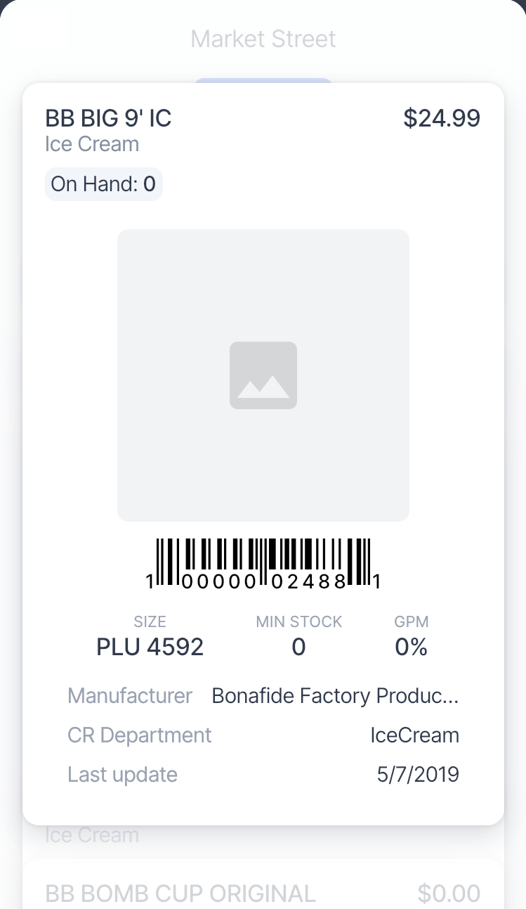 If the item from the global price book was not found in the Retail360 app, go to CStoreOffice® and add the item you need to your location. After that, the item should be available for searching in the Retail360 app. For more information, see Setting Up Items.