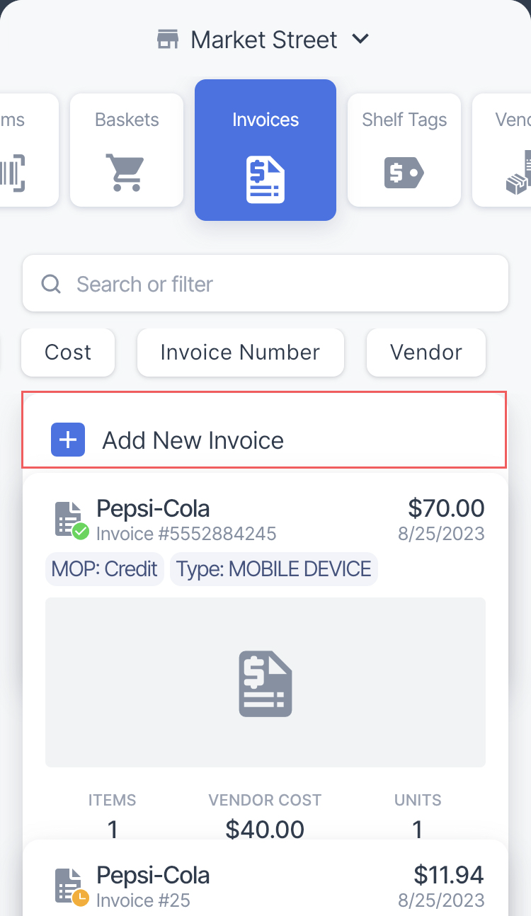 - In the invoices list, tap Add New Invoice.