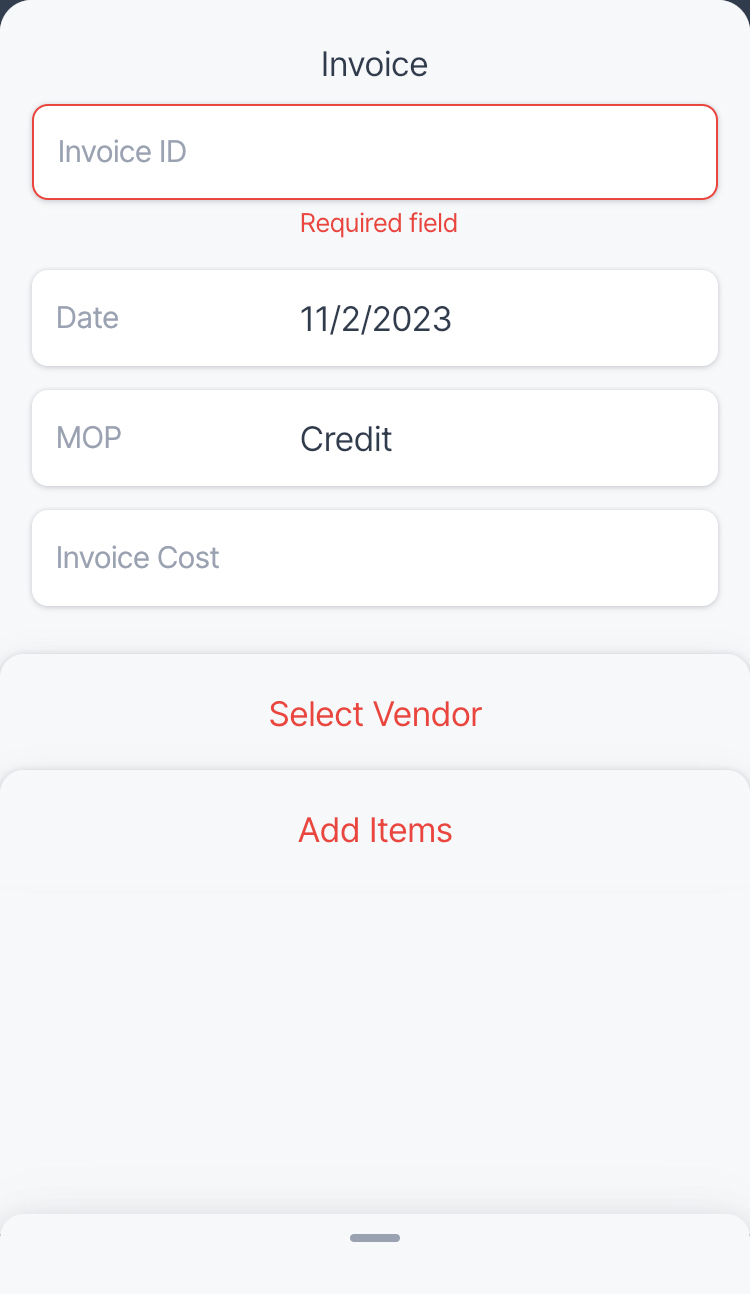 - Tap the Invoice Cost field and enter the invoice cost value.